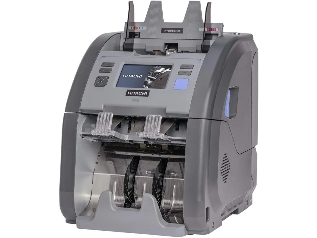 Hitachi IH-110 Cash Counting & Sorting Machine With Counterfeit Detection Technologies, 4.3″ Full Color Touch Screen, Dual Pocket, Dual CIS, Fitness Sorter With 25 Currencies, Gray | IH-110