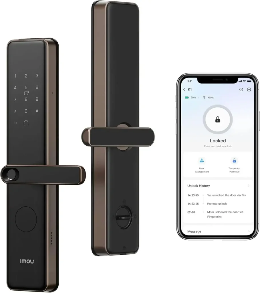 IMOU K1-G-W-EN Smart Door Lock – 5-in-1 Keyless Entry, Fingerprint, WiFi & Bluetooth, App Control, Gold/Black Finish | K1-G(F)-W-EN